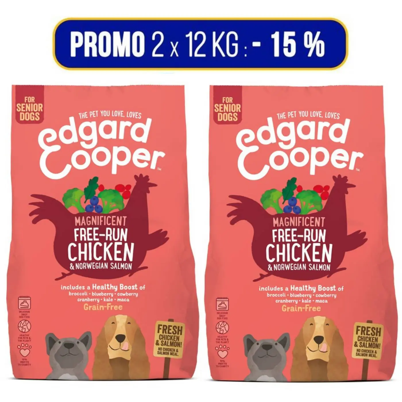 Edgard Cooper Senior 12kg Pollo e Salmone per cani é un alimento completo secco perfetto per cani anziani.