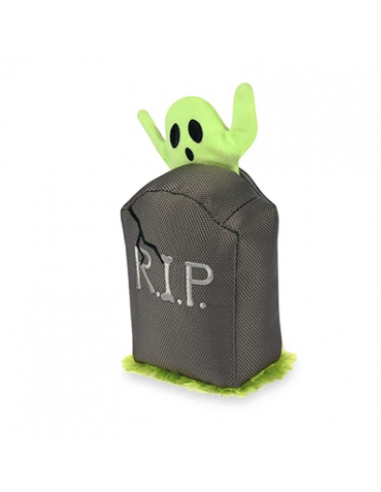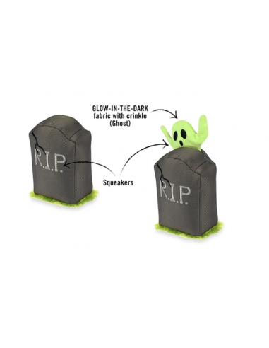 Gioco Play Howling Haunts, Lapide Peluche. Gioco Per Cani . Gioco inerente tema Halloween, per un gioco terrificante !!!! Gioco per cani con squeker Il fantasma entra all’interno della lapide. Al buio il fantasma è riflettente .