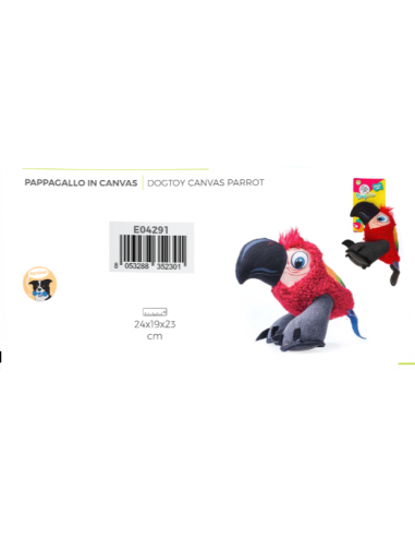 Pappagallo In tessuto. Giochi Per cani . Divertente gioco per animali con squeakers . Dimensioni cm 24x19x23