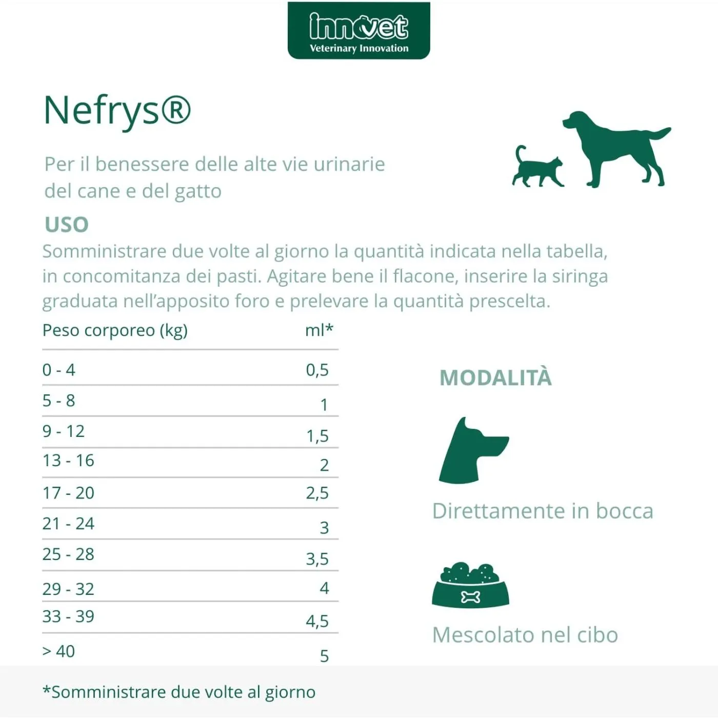 Innovet Nefrys® Integratore per Cani e Gatti 100ml, utile per il benessere delle alte vie urinarie nel cane e nel gatto.
