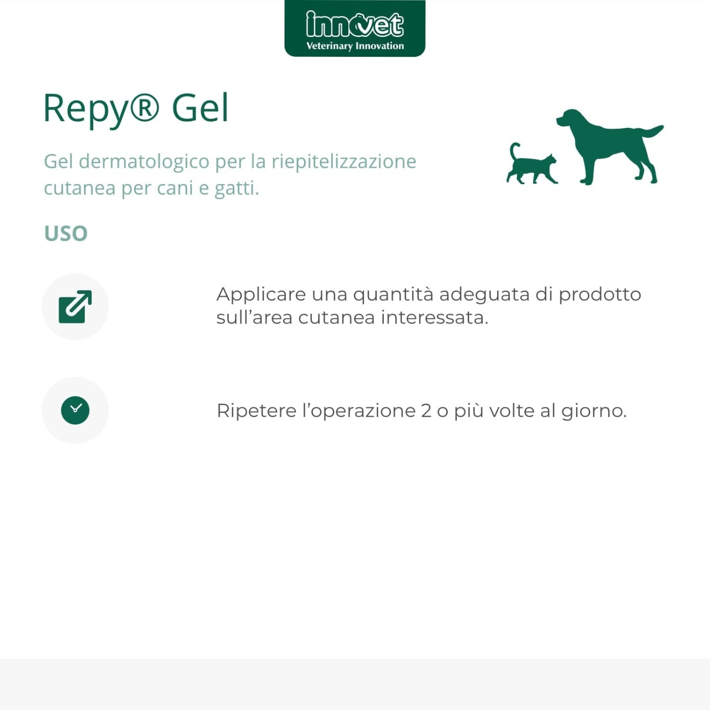 Innovet Repy® Gel Dermatologico per Cani e Gatti 75ml, gel dermatologico per la riepitelizzazione cutanea.
