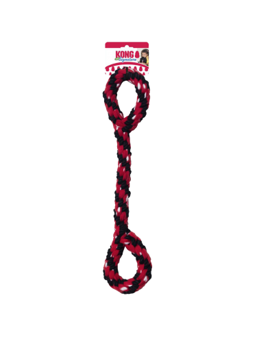 Kong Signature Rope Double Ring Tug. Gioco Per Cani . KONG Signature Rope 22″ Double Tug è realizzato con cotone intrecciato e corda di lana per un’elasticità giocosa. I doppi nodi premiano l’istinto di mordere e masticare. Realizzato con materiale resistente per infiniti tiro alla fune! I due anelli all’estremità sono ideali per il gioco interattivo. Importante: utilizzare solo con supervisione. Interrompere se danneggiato. Adatto a cani con morso leggero/moderato. Per i cani che mordono duramente, cerca un giocattolo KONG di gomma. Non è fatto per stare da solo con il cane. Non è un giocattolo da masticare. Non permettere al cane di metterlo tra le sue zampe e iniziare a tirare o rosicchiare. Utilizzare solo in modo interattivo. Nessun giocattolo è indistruttibile, quindi resta sempre nei paraggi. Composizione: cotone e lana. Lunghezza totale 60 cm