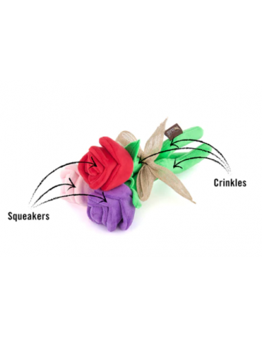 Gioco Rose Peluche. gioco per cani. con squeakers e crunch. Artigianato fatto a mano, esterno a doppio strato e cuciture rinforzate per una maggiore durata Il riempitivo ecologico PlanetFill® è realizzato al 100% con bottiglie di plastica riciclate certificate post-consumo Lavabile in lavatrice e adatto all’asciugatrice Presenta coloranti privi di AZO lunghezza totale del gioco cm 23