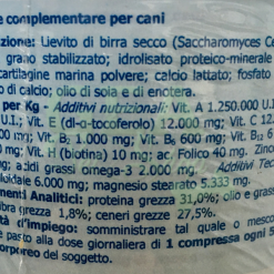 Contiene anche acido linoleico indispensabile all’integrità della cute, del pelo e delle funzioni riproduttive. - IDROLISATO PROTEICO-MINERALE di pesce marino e CARTILAGINE MARINA sono prodotti selezionati dalla lavorazione della pesca oceanica, apportatori di proteine nobili idrolisate, di mucopolisaccaridi quali condroitinsolfato e glucosamina (glucosaminoglicani) e di calcio e fosforo organici molto assimilabili e presenti nel giusto rapporto.