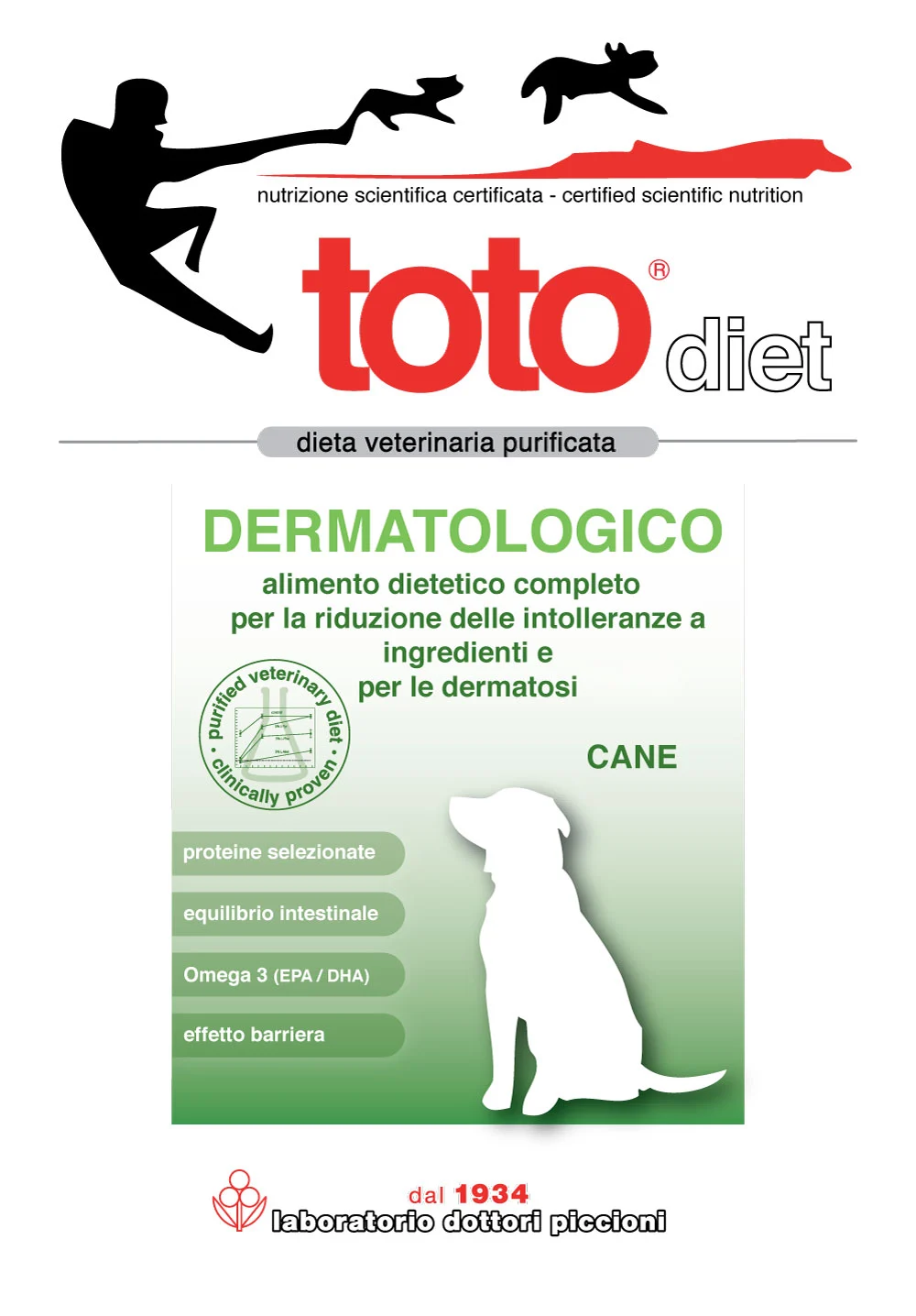 L’alimento dietetico Toto “DERMATOLOGICO” deve essere somministrato tal quale o leggermente inumidito, lasciando sempre a disposizione del cane acqua fresca e pulita.