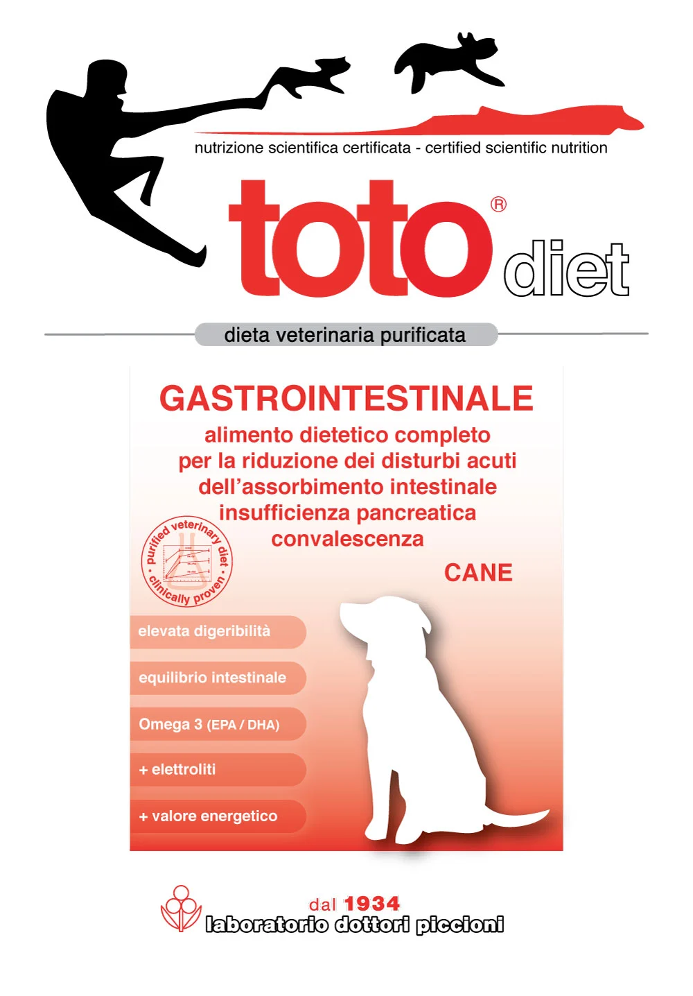 Toto Gastrointestinale per Cani è un alimento dietetico secco completo per cani indicato per la riduzione dei disturbi acuti dell’assorbimento intestinale, per la compensazione della cattiva digestione (insufficenza pancreatica esocrina) e per la ripresa nutrizionale e la convalescenza.