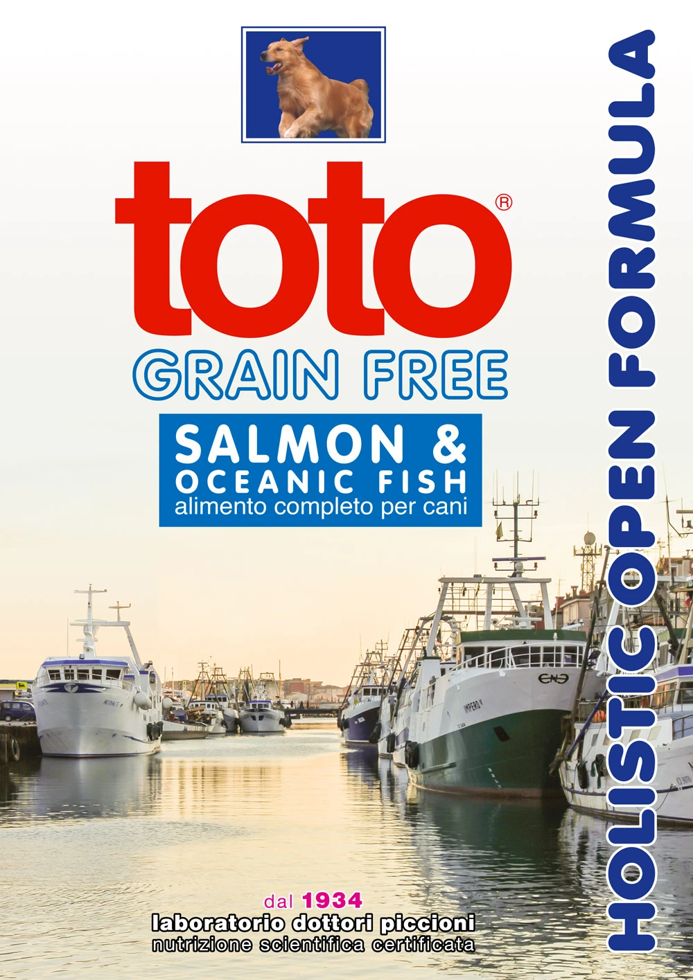 Toto Holistic Open Formula Crocchette per Cani Grain Free Salmone e Pesce è un cibo secco completo e bilanciato di qualità super-premium, è specifico per l’allevamento e il mantenimento di cani intolleranti ai cereali.