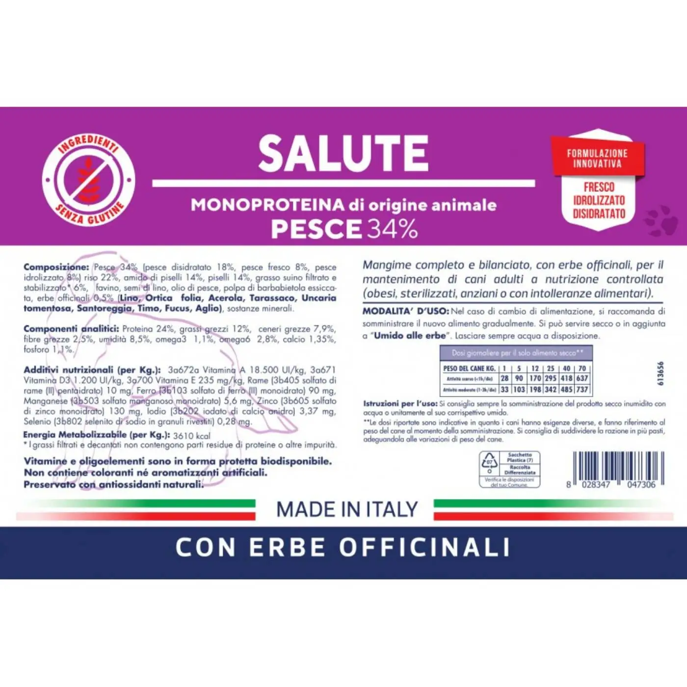 .Pesce 34% (pesce disidratato 18%, pesce fresco 8%, pesce idrolizzato 8%)